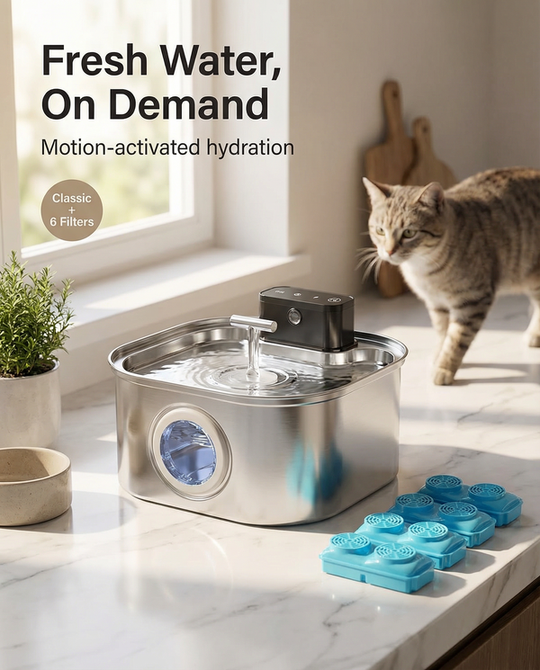 Automatic water flow and a motion sensor deliver fresh water whenever pets approach. Saves time each day and prevents stagnant bowls, so cats and small dogs drink more and stay healthier with minimal effort.