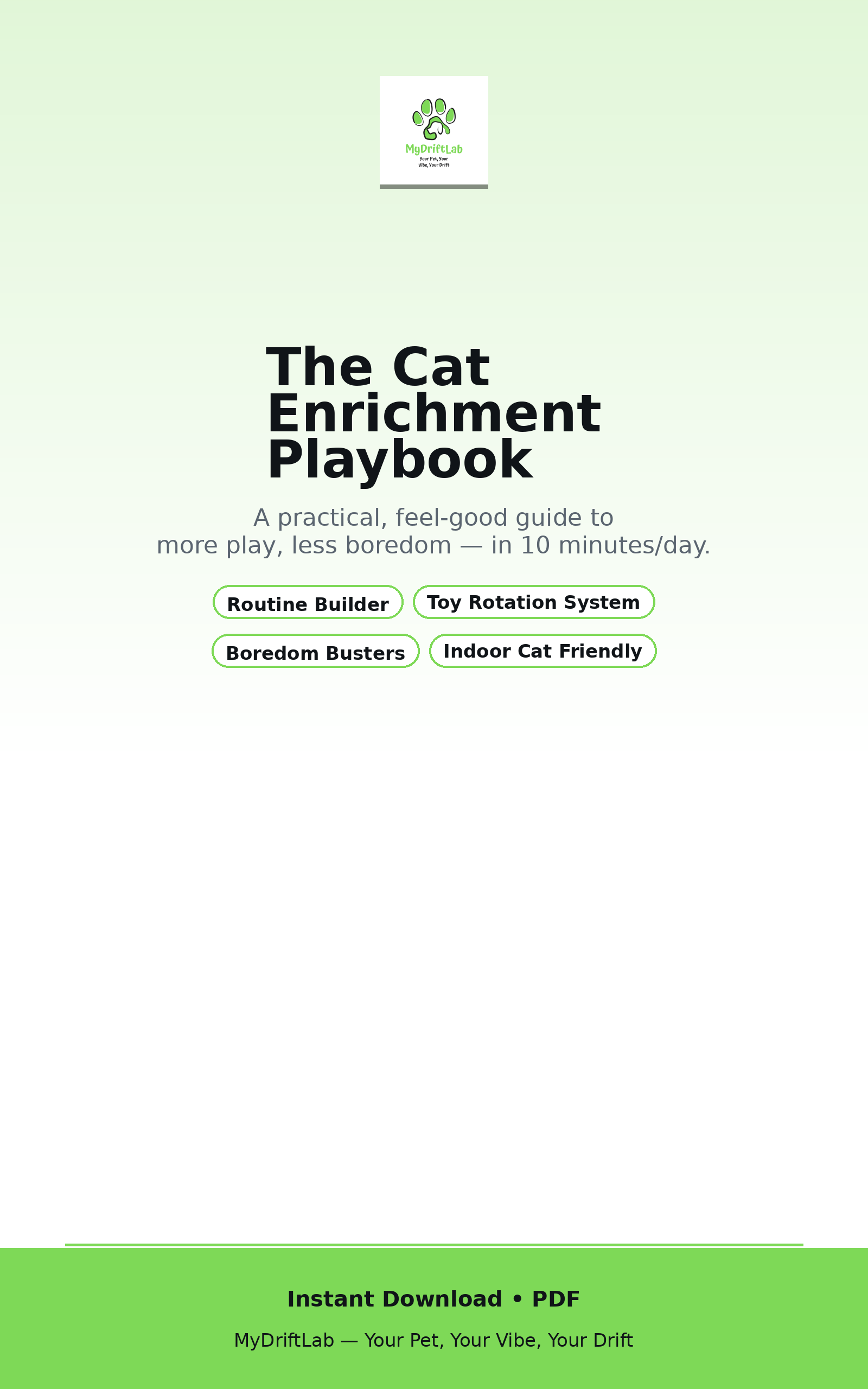 This is MyDriftLab’s step-by-step enrichment system that helps you create daily play your cat actually wants (in 10 minutes/day).